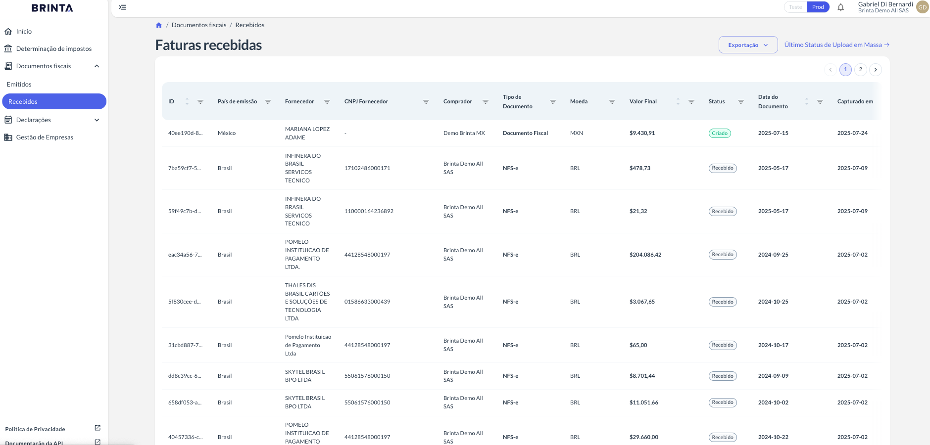 Brinta will capture invoices issued against your business and display them in the Invoicing Dashboard under Inbound or some different name translated as you can see below in PT-BT as Recebidos.