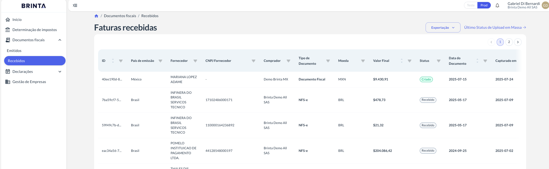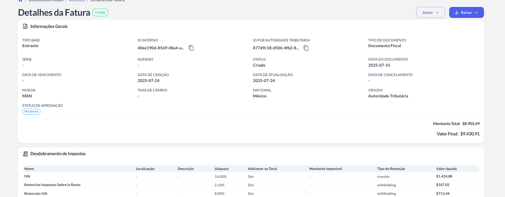 Click in the eye to enter in the invoice detail page.