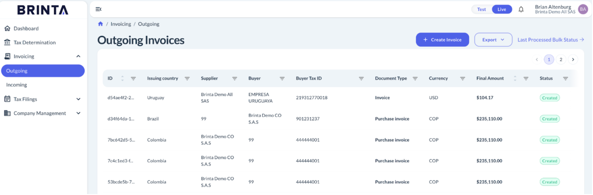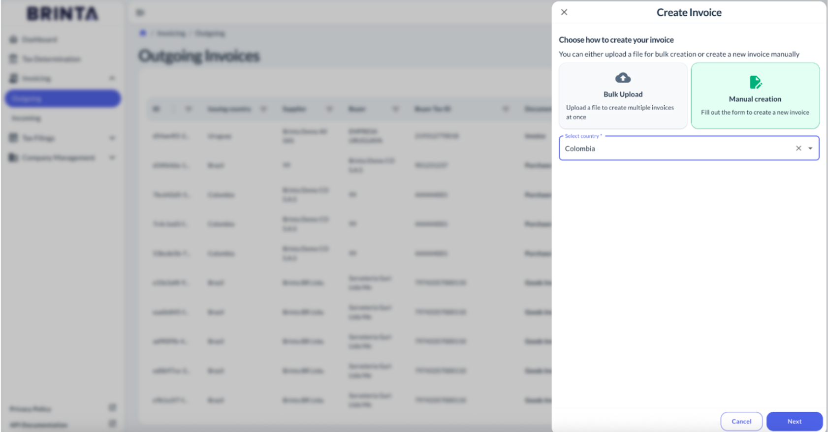 This guide explains how to manually create an Invoice and Purchase Invoice in Colombia using the Brinta platform.