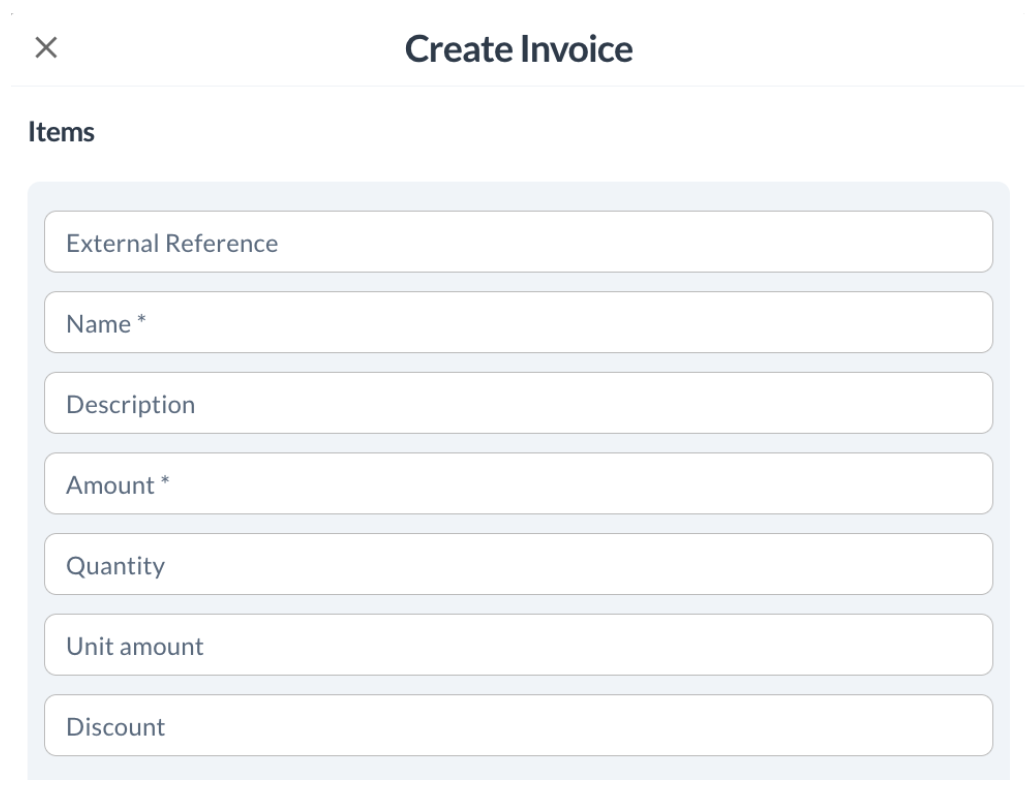 In this step, you define the items (products or services) included in the invoice. Complete the following fields: