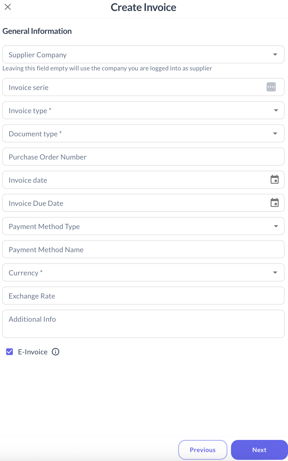 - Select the supplier company issuing the invoice.
