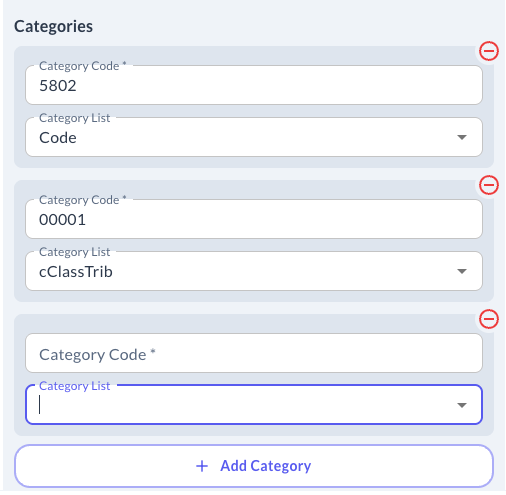 - In Category Code, you can add the code for each
